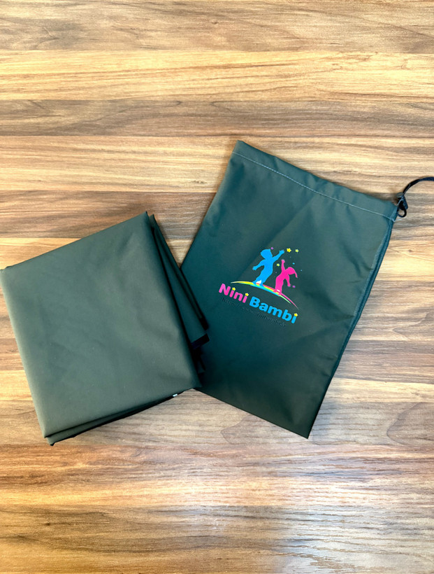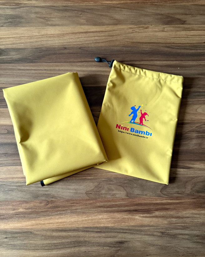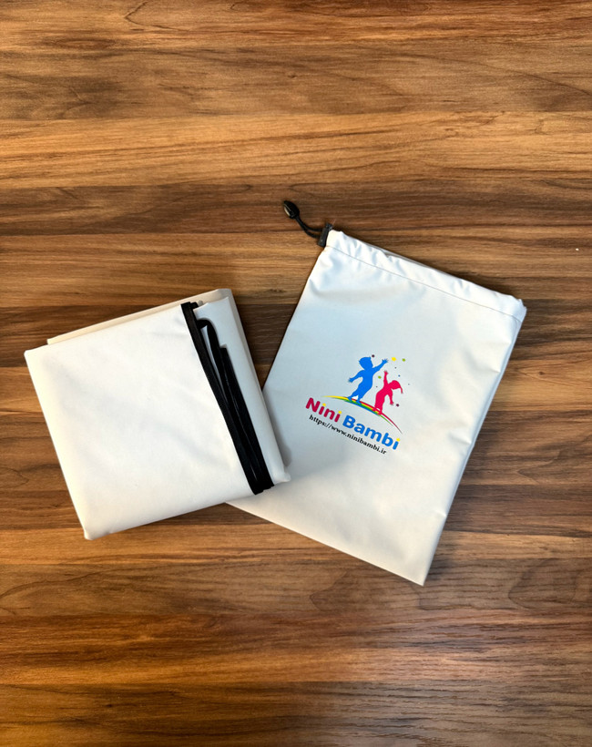 "زیرانداز ضدآب نینی بامبی، با طراحی ساده و کیف جمعشو، مناسب برای استفاده در پارک، سفر و بیرون از خانه. ضد آب، قابل شستشو و سبک برای حمل آسان."