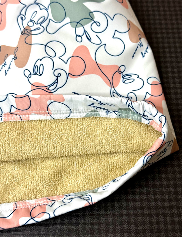 جنس: دولایه می باشد. لایه رویی ضدآب و لایه داخلی از جنس حوله ای نرم و لطیف