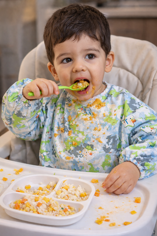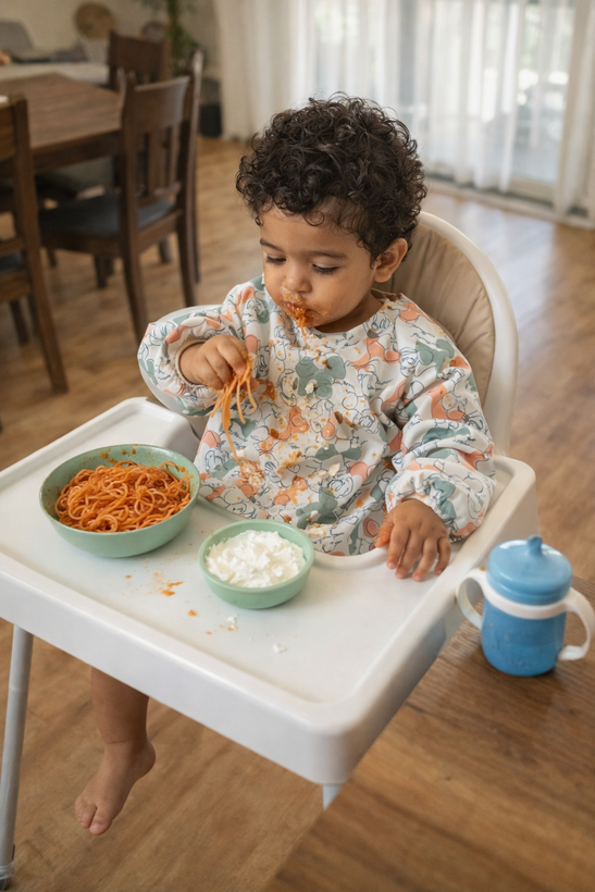 مناسب برای غذا خوردن، نقاشی، بازی با رنگ و هر فعالیتی که ممکنه لباسها رو کثیف کنه.